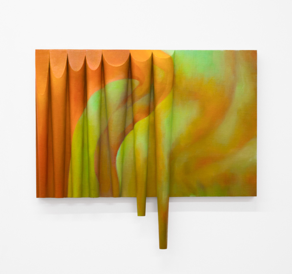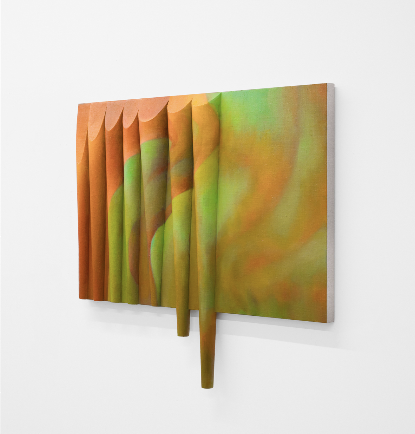 The Flutes III, 2024 Oil on linen mounted on volumetric wood 27 × 30 × 2 1/2 in | 68.6 × 76.2 × 6.4 cm