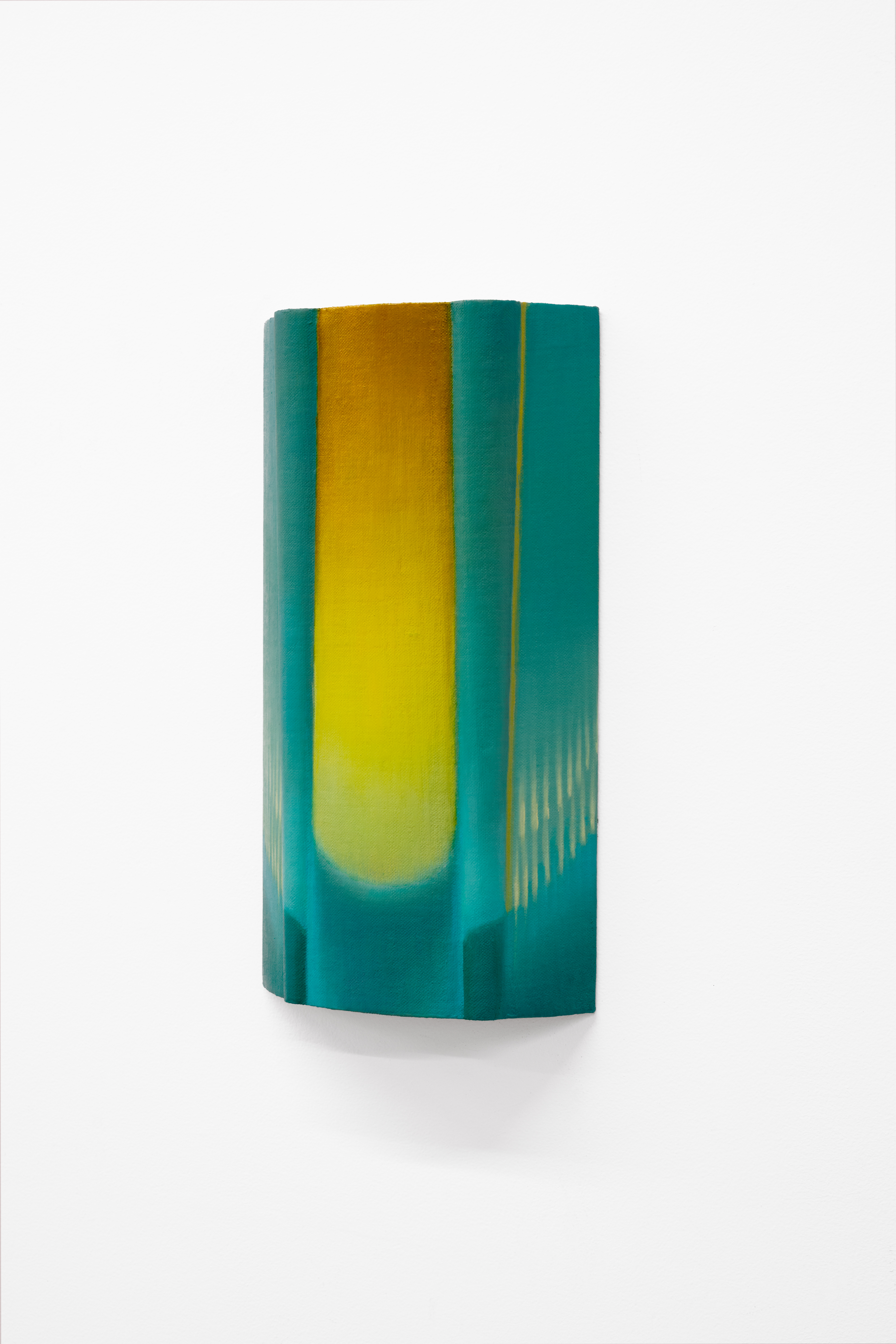 Pillar II, 2024 Oil on linen mounted on volumetric wood 13 × 7 × 2 1/2 in | 33 × 17.8 × 6.4 cm