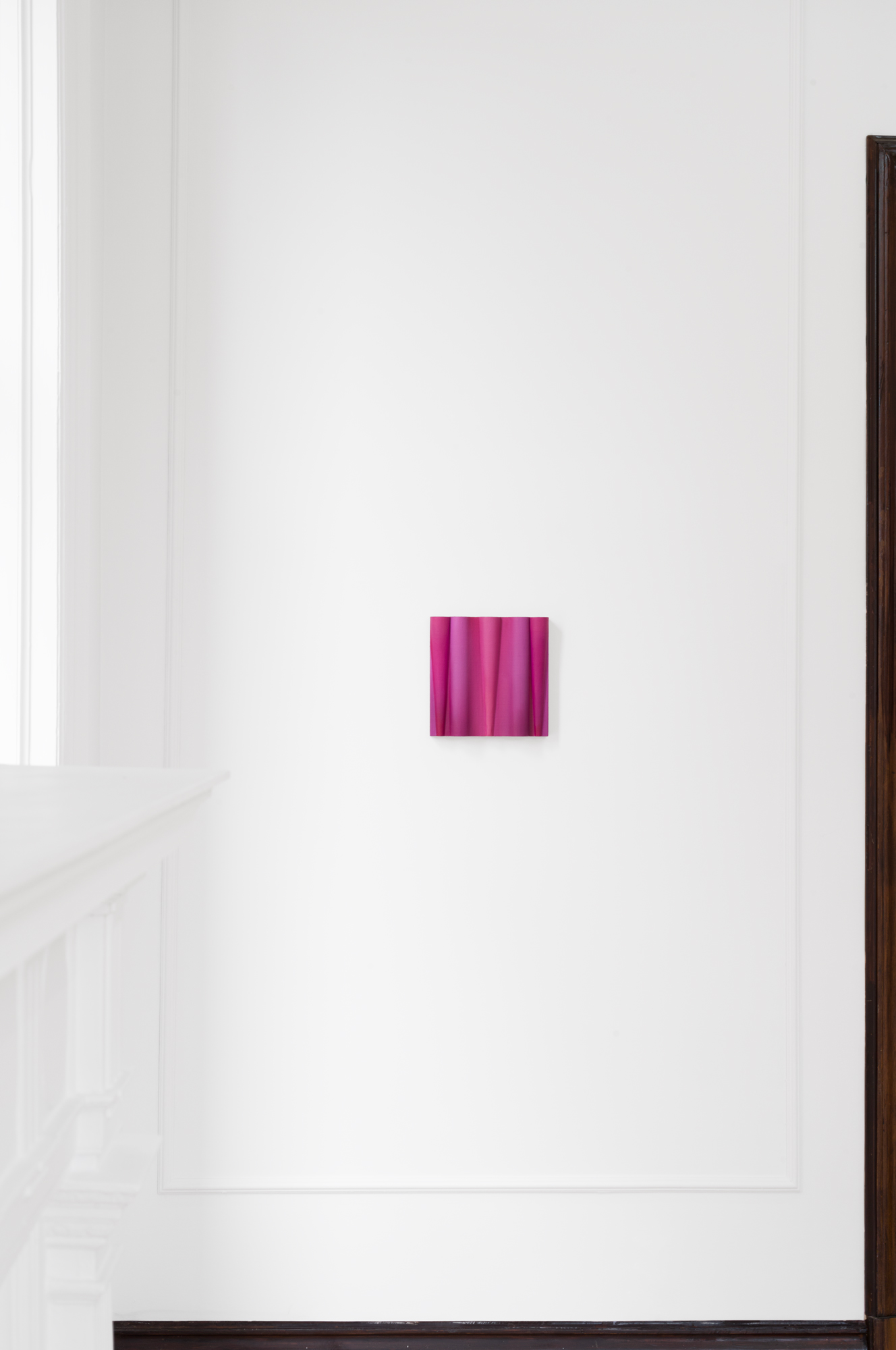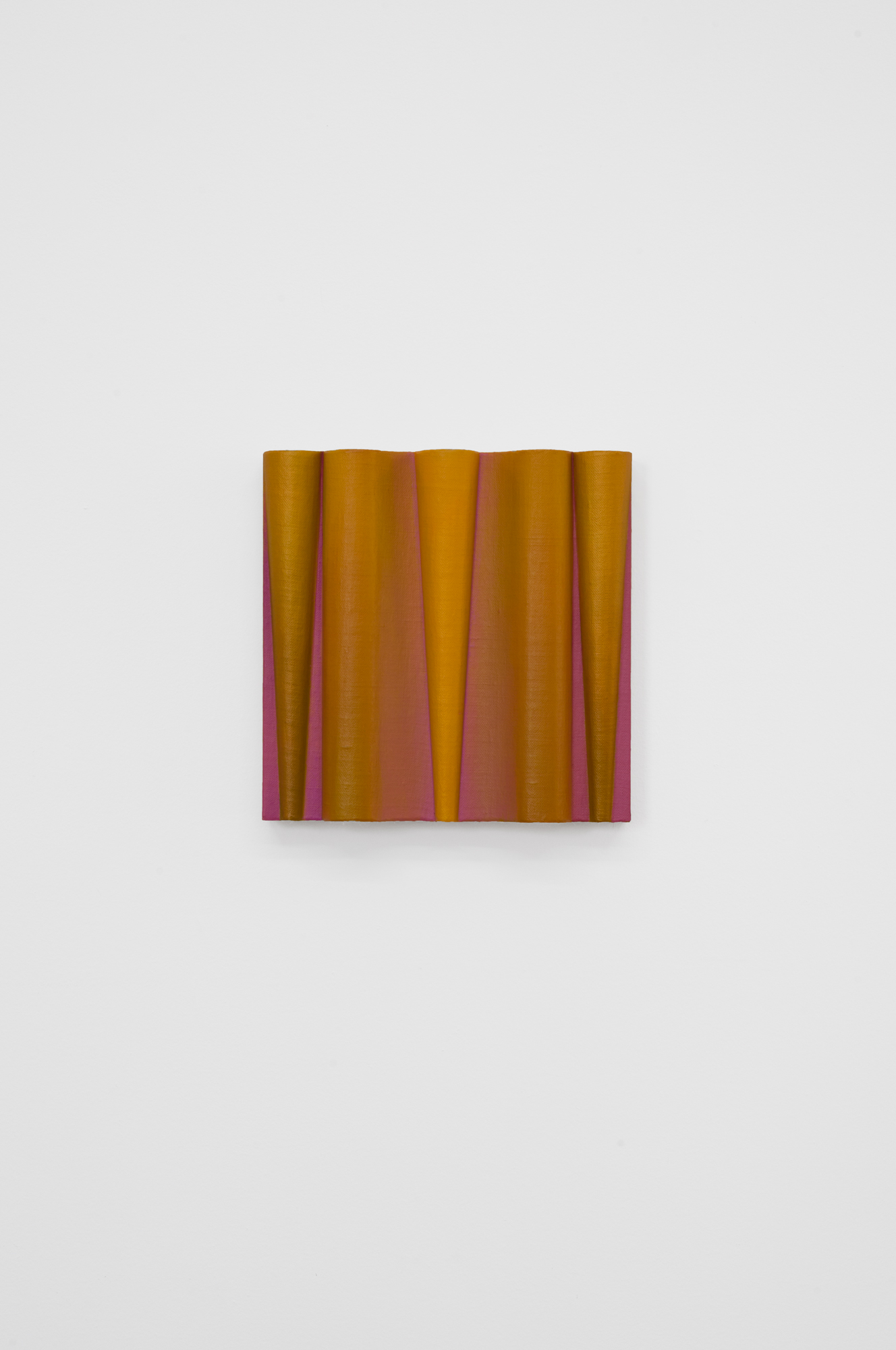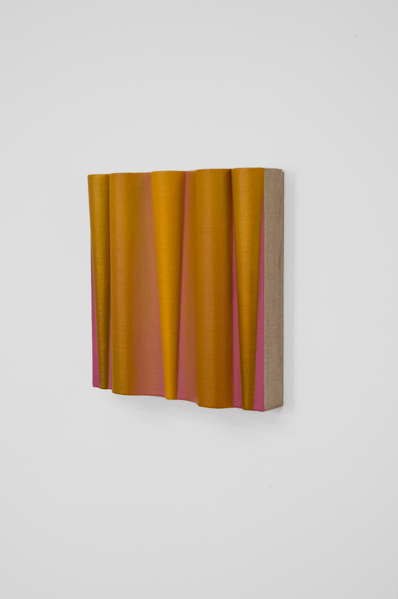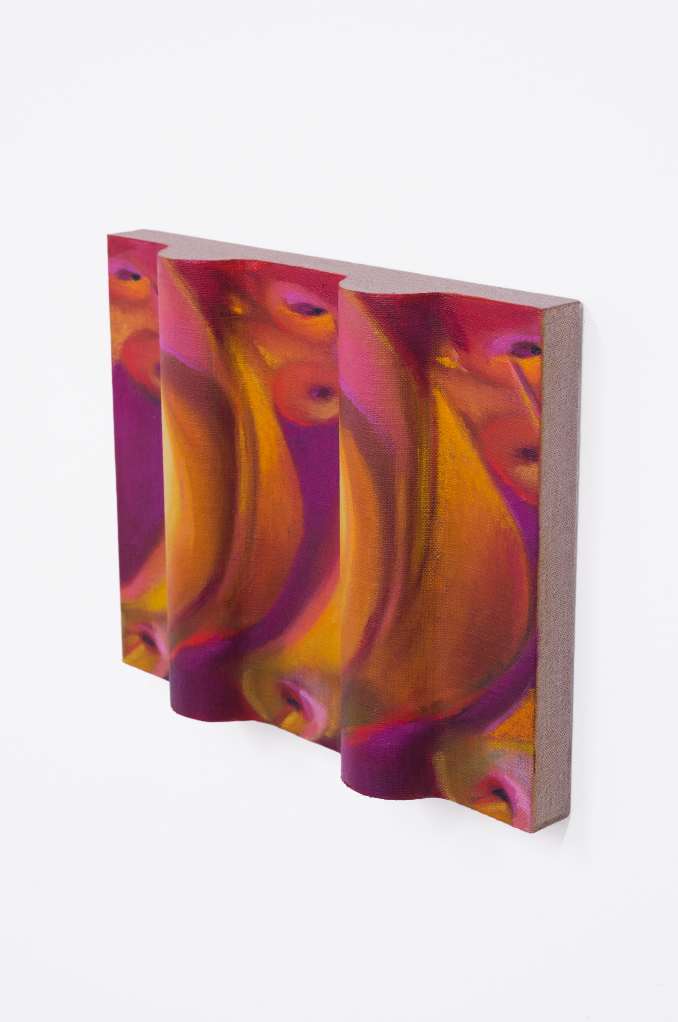 Pink noise, 2024, oil on linen mounted on volumetric wood, 9 x 9 x 2 in