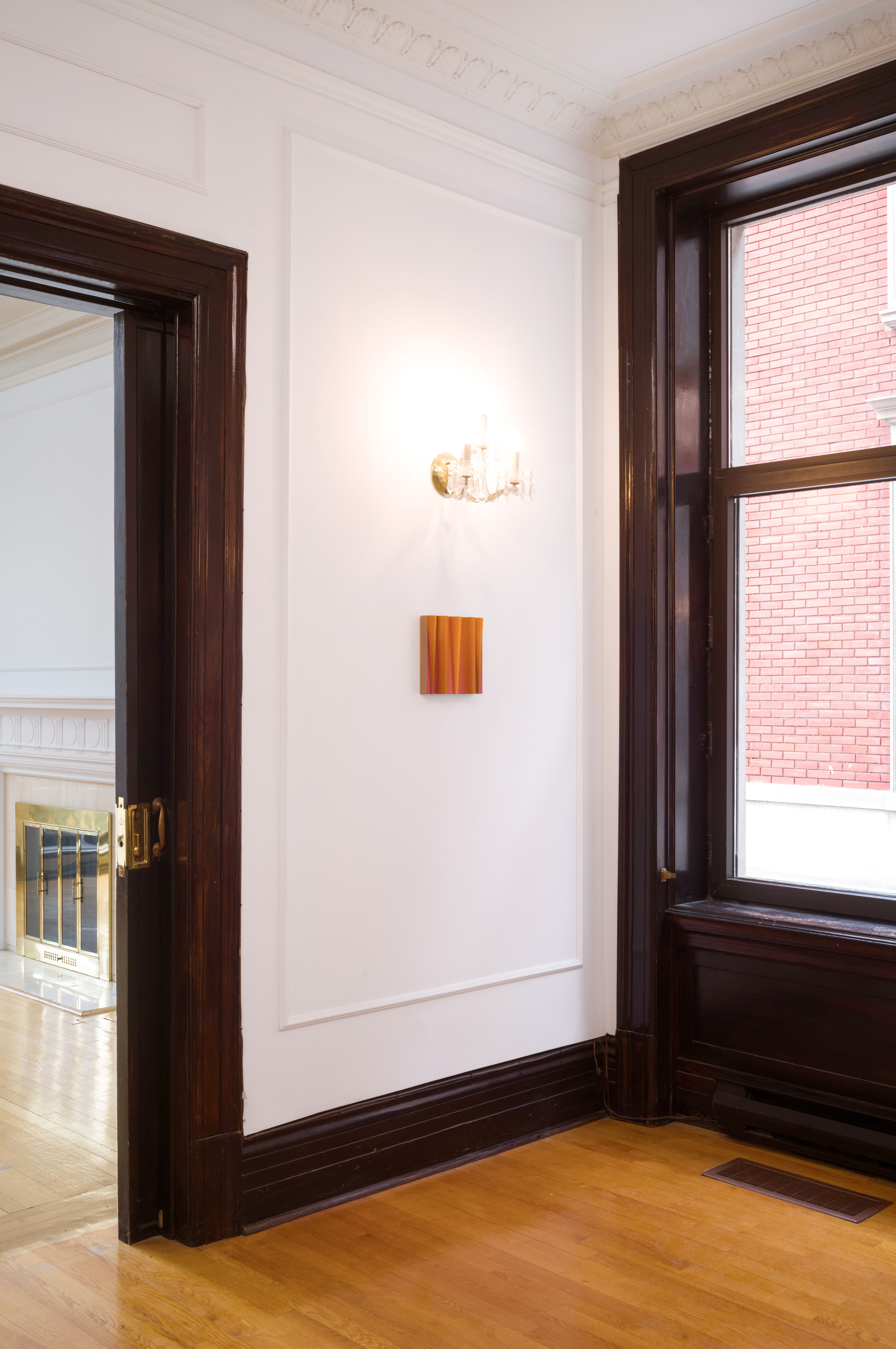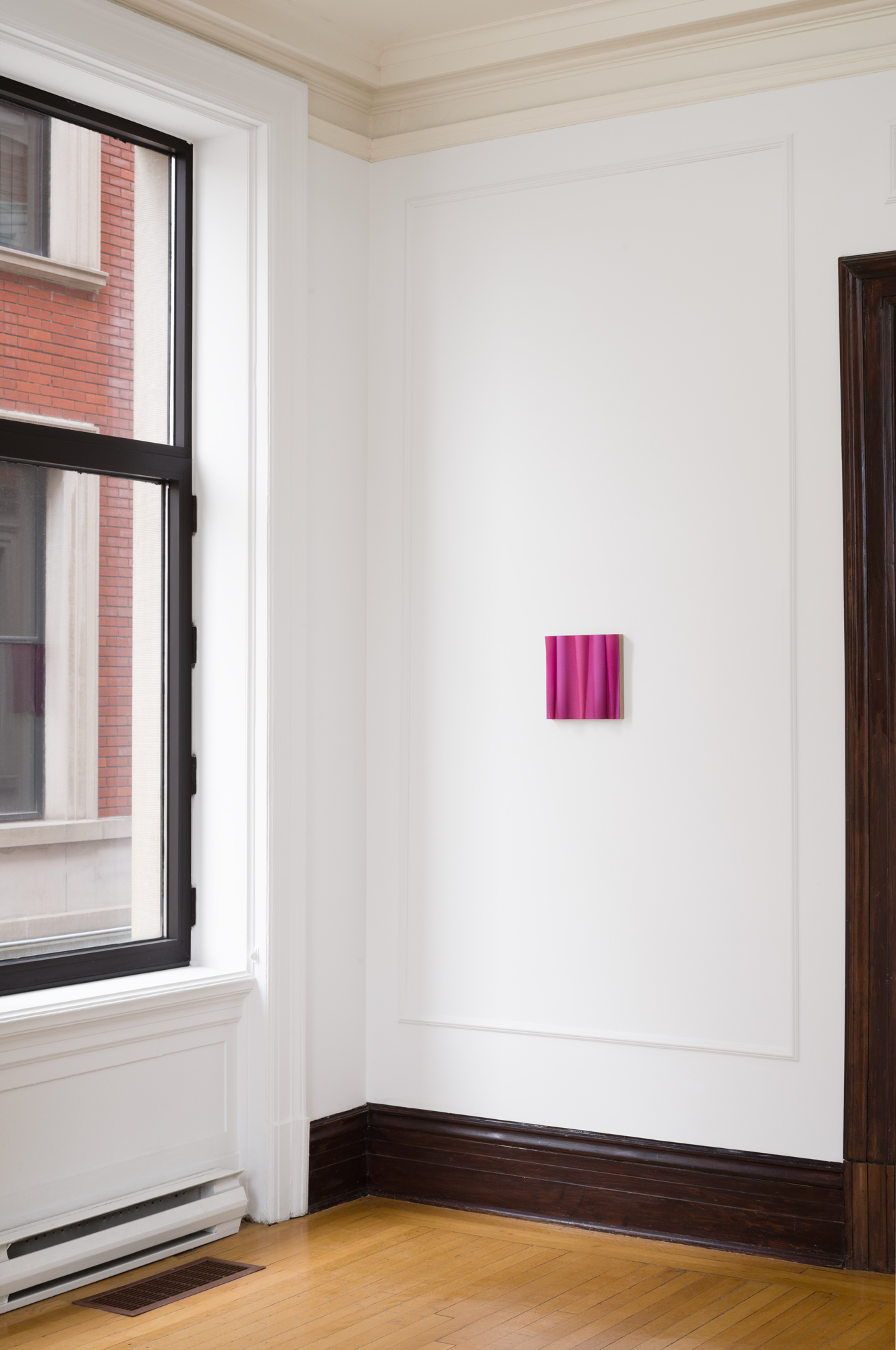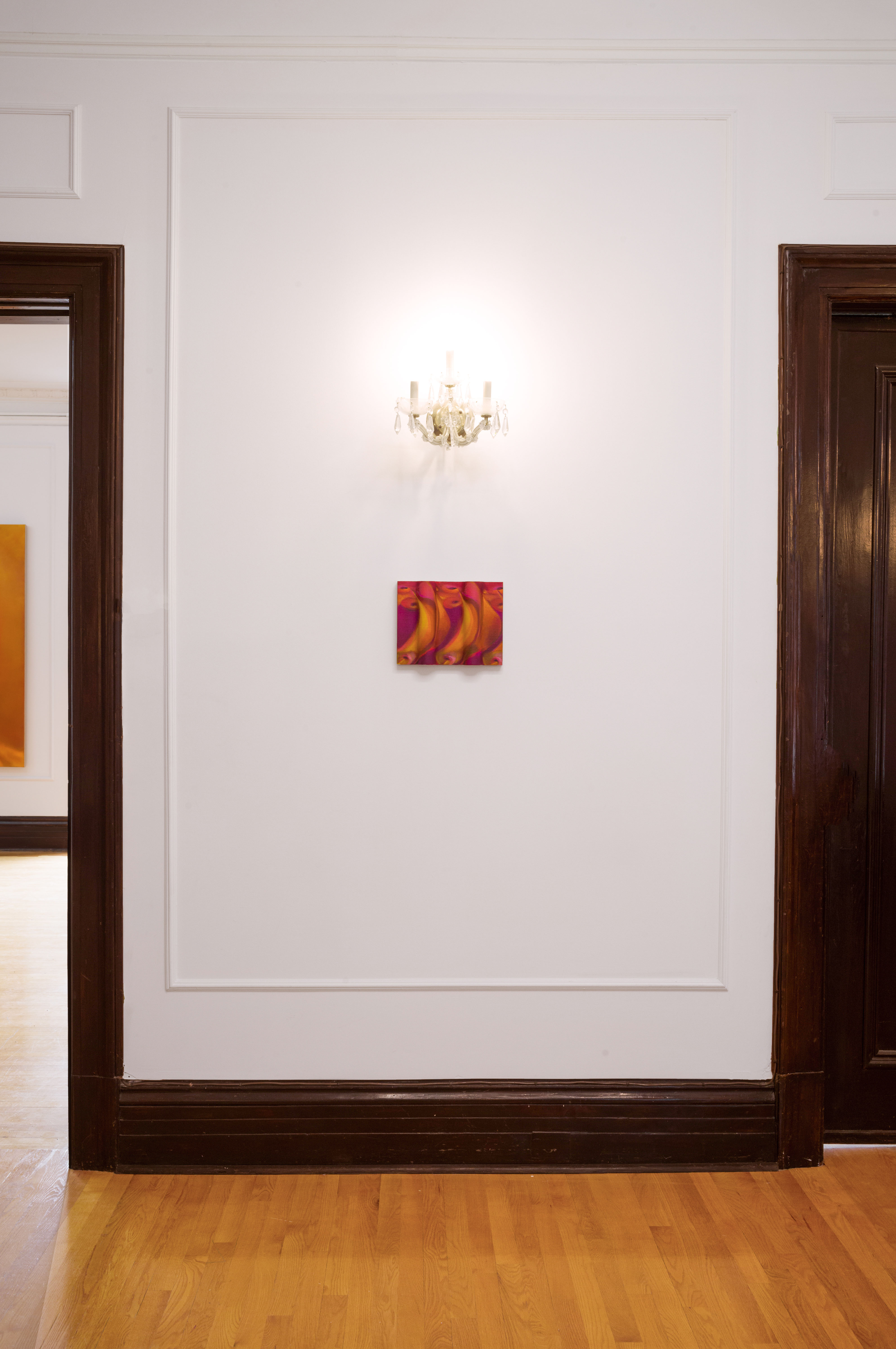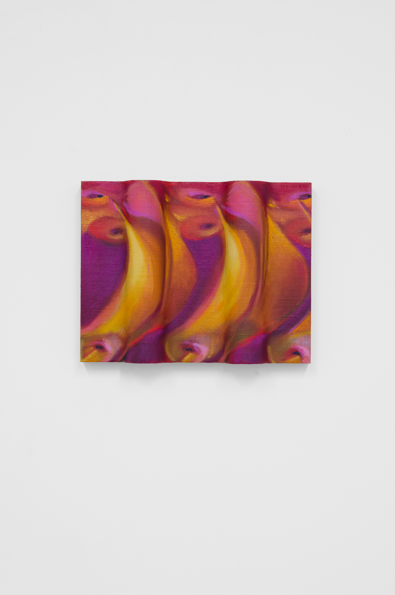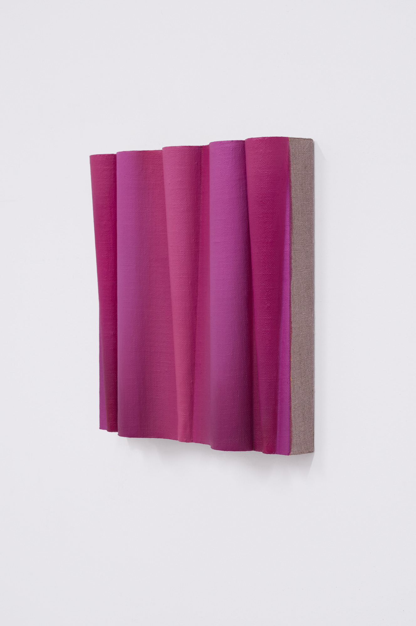 Pink noise, 2024, oil on linen mounted on volumetric wood, 9 x 9 x 2 in